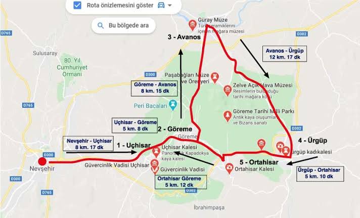 ☝️ Yukaridaki resimde Nevşehir İl sınırlarına girmenizle birlikte bir gün de hızlıca yapabileceğiniz bir rotayı görebilirsiniz. Ama daha çok vaktiniz var ise Hacıbektaş, Gülşehir Açıksaray harabeleri ve St. Jean kilisesi, Aşıklıhöyük, St. Mercurius mezarlığı ve kaya mekanları, Güzelyurt ( Gelveri ), Kayseri şehir merkezi ve tarihi han hamam, medrese, camileri, Mimar Sinan’ın doğduğu ev, Sultan Sazlığı, Erciyes Dağı ve Niğde Gümüşler Manastırı gibi bir çok gezmeye değer noktayı gezinize ekleyebilirsiniz. Bu yukarıda gezilen tur rotaları gruplarla da gezilebiliyor ve hergün var.. olur da kendiniz gezmek yada bir rehber almak isterseniz de ulaşabilirsiniz.